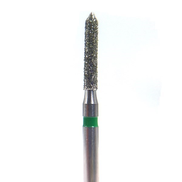 Бор алмазный 885, заостренный цилиндр, турбинный наконечник, D=1.4 мм, L=8.0 мм, зеленый