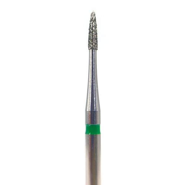 Бор алмазный 889, пламевидный, турбинный наконечник, D=1.0 мм, L=4.0 мм, зеленый