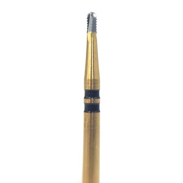 Бор твердосплавный CB 34, цилиндр закругленный с зубцами, турбинный наконечник, 6 лезвий, D=1.0 мм, L=2.0 мм, 2 черных кольца