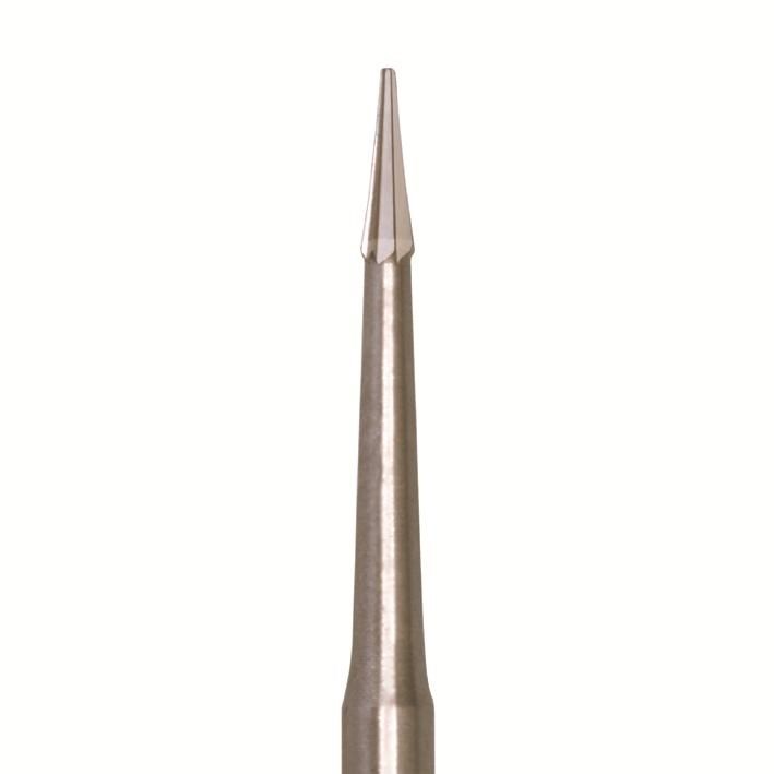 Бор TBC для турбинного наконечника. Диаметр рабочей части 0,8 мм. В упаковке 5 шт. Форма: узкий конус для корневых каналов.
