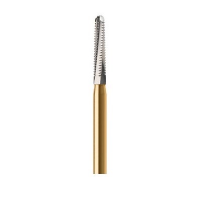 Бор ТВС серии VIPER для турбинного наконечника. Общая длина 19 мм, диаметр рабочей части 1,6 мм. В упаковке 5 шт. Форма: конус с закругленным концом. Полностью изготовлен из карбида вольфрама. Нет спайки между хвостовиком и рабочей частью. Хвостовик золотистый с покрытием из нитрид титана. Артикул CBP856.314.016.
