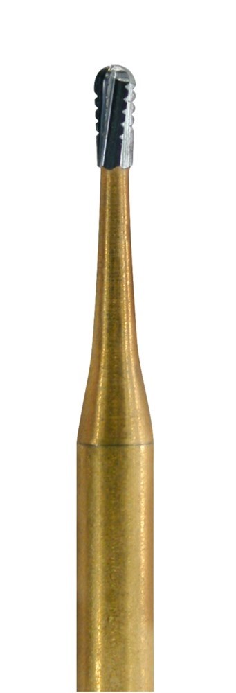 Бор ТВС серии VIPER для турбинного наконечника. Общая длина 19 мм, диаметр рабочей части 0,8 мм. В упаковке 5 шт. Форма: груша. Полностью изготовлен из карбида вольфрама. Нет спайки между хвостовиком и рабочей частью. Хвостовик золотистый с покрытием из нитрид титана.