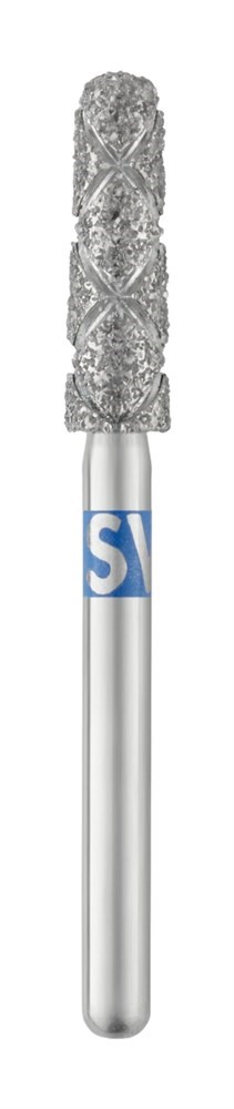 Боры алм. TDA 856/024 M 123 цилиндр с закругленным концом, стандартная зернистость. С перекрестной насечкой, которая не дает борам забиваться остатками костной ткани и предотвращает нагревание ткани зуба.