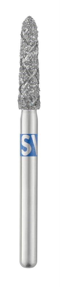 Боры алм. TDA 878/020 K M 422 цилиндр с усеченным концом, стандартная зернистость. С перекрестной насечкой, которая не дает борам забиваться остатками костной ткани и предотвращает нагревание ткани зуба.