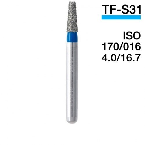 Алмазные боры для турбинного наконечника TF-S31 ISO 170/016 применяется в стоматологической практике для препарирования эмали, а также пломб из композитных материалов и стеклоиономерных цементов для обеспечения эндодонтического доступа.