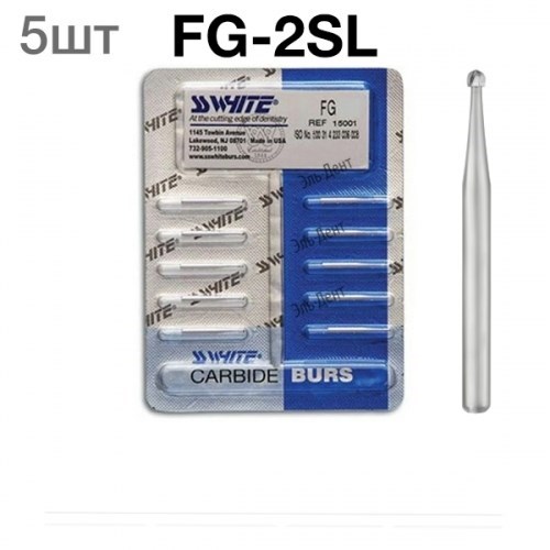 Боры SSWhite FG 2SL (d010, 5шт.) твердосплавные шаровидные хирургической длины турбинные