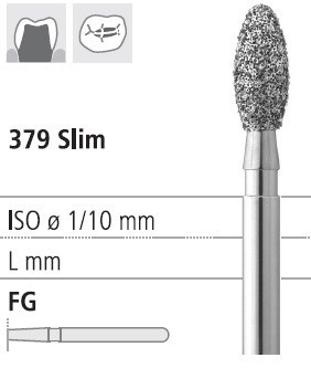 Боры стоматологические алмазные FG 379/021, желт., 6шт. ISO код 314277504021, арт: FG5250/6
