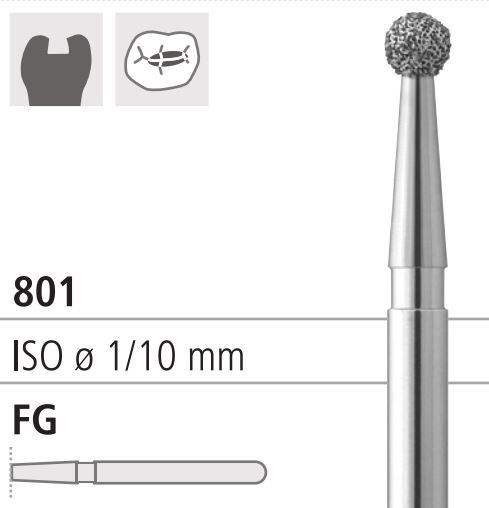 Боры стоматологические алмазные FG 801/013, красный, 1 шт. ISO код 314001514013., арт: FG4201S/1