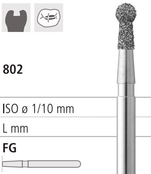 Боры стоматологические алмазные FG 802/018, 6шт. ISO код 314002524018., арт: FG301/6