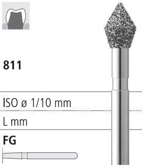 Боры стоматологические алмазные FG 811/029, зел., 6шт. ISO код 314038534029, арт: FG198/6 C