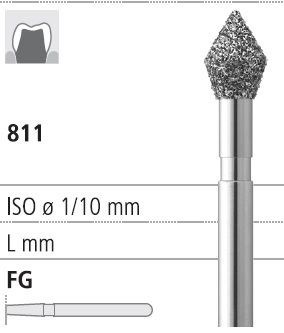 Боры стоматологические алмазные FG 811/030, черн., 6шт. ISO код 314038544030, арт: FG198/6 CB