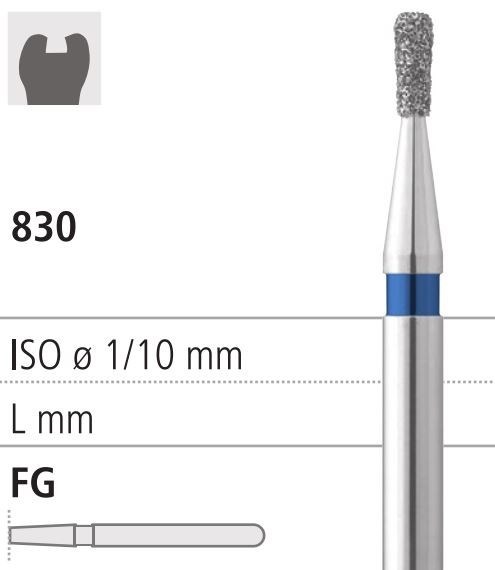 Боры стоматологические алмазные FG 830/012, 6шт. ISO код 314235524012, арт: FG219B/6