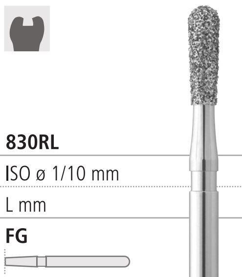 Боры стоматологические алмазные FG 830RL/016, 6шт. ISO код 314238524016., арт: FG226/6