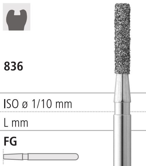 Боры стоматологические алмазные FG 836/015, черн., 1 шт. ISO код 314110544015, арт: FG114/1 CB