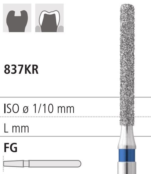 Боры стоматологические алмазные FG 837KR/010, белый, 6шт. ISO код 314158514010., арт: FG3712B/6