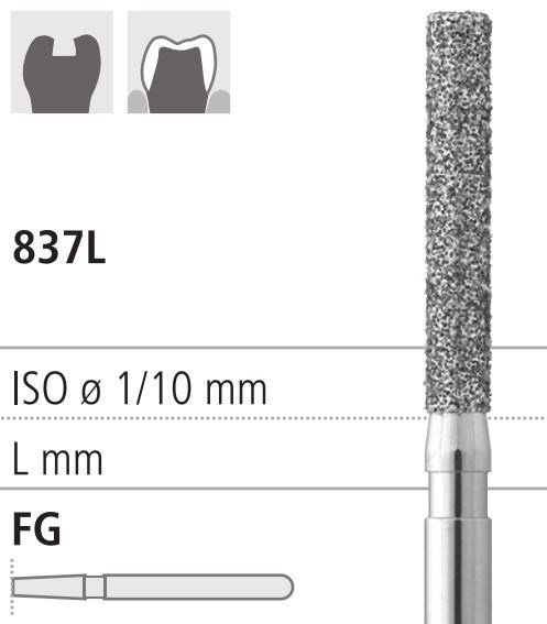 Боры стоматологические алмазные FG 837L/016, зел., 6шт. ISO код 314112534016, арт: FG314L/6 C