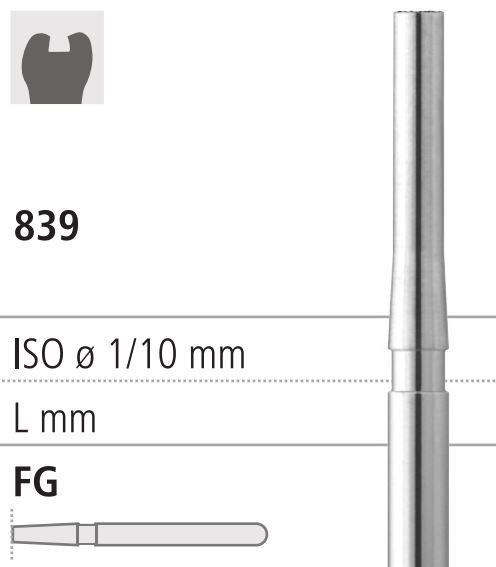 Боры стоматологические алмазные FG 839/014, синий, 6шт. ISO код 314150524014., арт: FG01480/6
