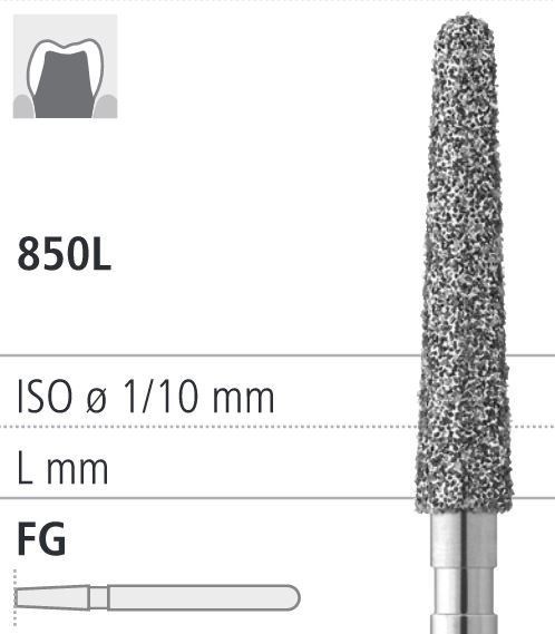 Боры стоматологические алмазные FG 850L/023, зеленый, 6шт. ISO код 314199534023., арт: FG240/6 C