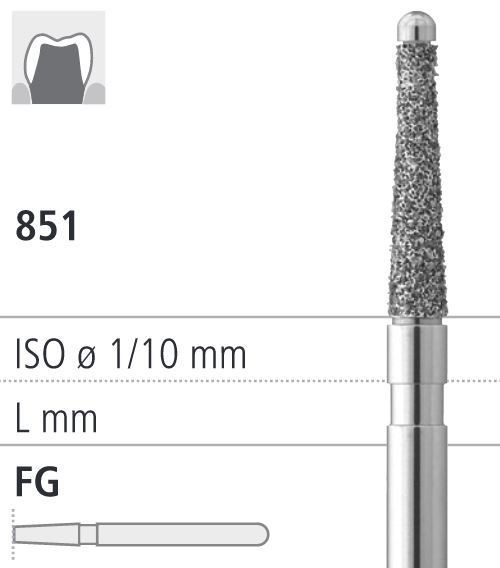 Боры стоматологические алмазные FG 851/017, 6шт. ISO код 314219524017, арт: FG19A/6