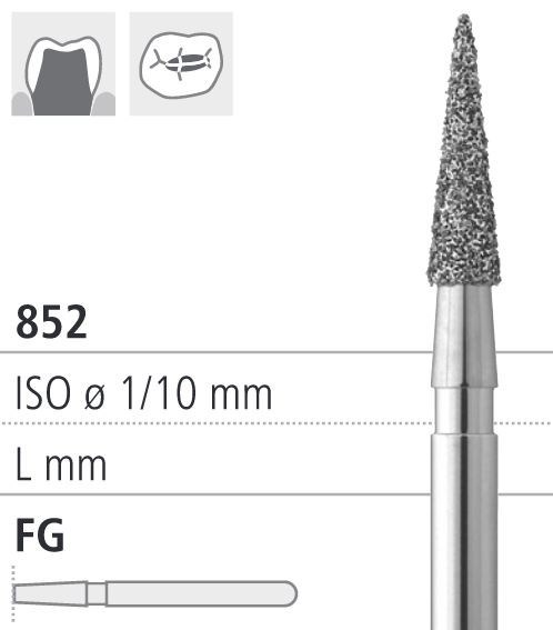Боры стоматологические алмазные FG 852/018, зол., 6шт. ISO код 314164514018., арт: FG113A/6 GB