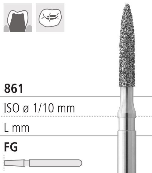 Боры стоматологические алмазные FG 861/012, зол., 6шт. ISO код 314248514012, арт: FG205L/6 GB