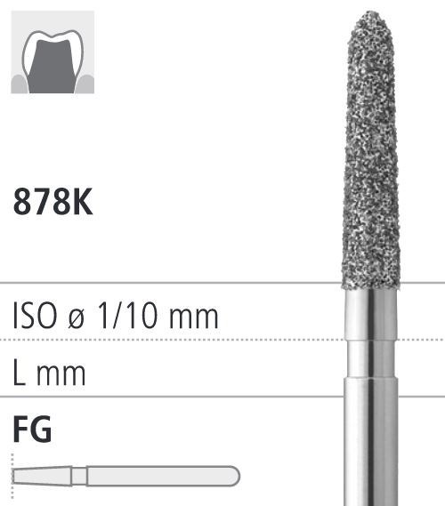 Боры стоматологические алмазные FG 878K/016, зол., 6шт. ISO код 314298514012, арт: FG182/6 GB