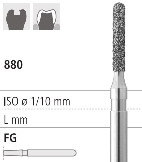 Боры стоматологические алмазные FG 880/012, зол., 6шт. ISO код 314140514012, арт: FG305/6 GB