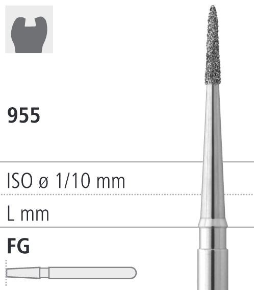 Боры стоматологические алмазные FG 955/008, красн., 6шт. ISO код 314699514008, арт: FG40D9/6