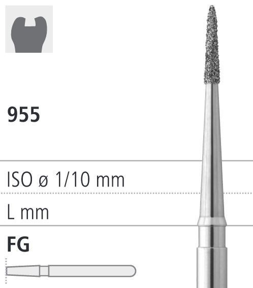 Боры стоматологические алмазные FG 955/011, 6шт. ISO код 314699534011, арт: FGD9/6 C