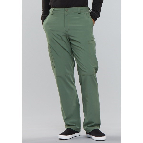 Мужские медицинские зауженные брюки Cherokee CK200AT выполнены в стиле модерн и имеют функциональную внутреннюю кулиску, эластичный пояс с трикотажной резинкой на спине, пять шлевок для ремня, ширинку на молнии с застежкой на пуговицу и скрытую ластовицу по внутреннему шву для большей легкости. Также у изделия есть два передних угловых кармана, правый двойной грузовой карман с эластичной петлей и втулкой, левый прорезной грузовой карман, задний накладной карман и коленные швы.