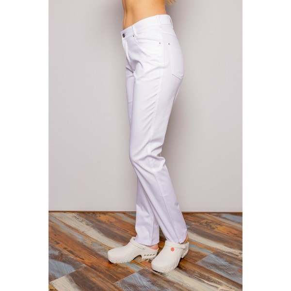 Женские медицинские брюки «Твил» имеют классический крой с высокой посадкой и с полуприлегающим силуэтом. Модель слегка заужена, она дополнена скрытой молнией, поясом на пуговице, шлевками для ремня и пятью карманами. Ткань плотная, обладает стрейч-эффектом, за счет чего обеспечивает комфорт и удобство в течение рабочего дня.
