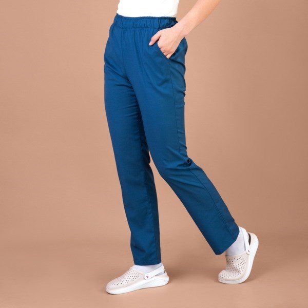 Женские медицинские брюки TZ315 имеют прямой силуэт и эластичный пояс, благодаря этому они идеально садятся по фигуре. Модель дополняют два боковых кармана. Прочный и дышащий материал, из которого сшиты брюки, обеспечивает комфортные ощущения от формы в течение рабочего дня.