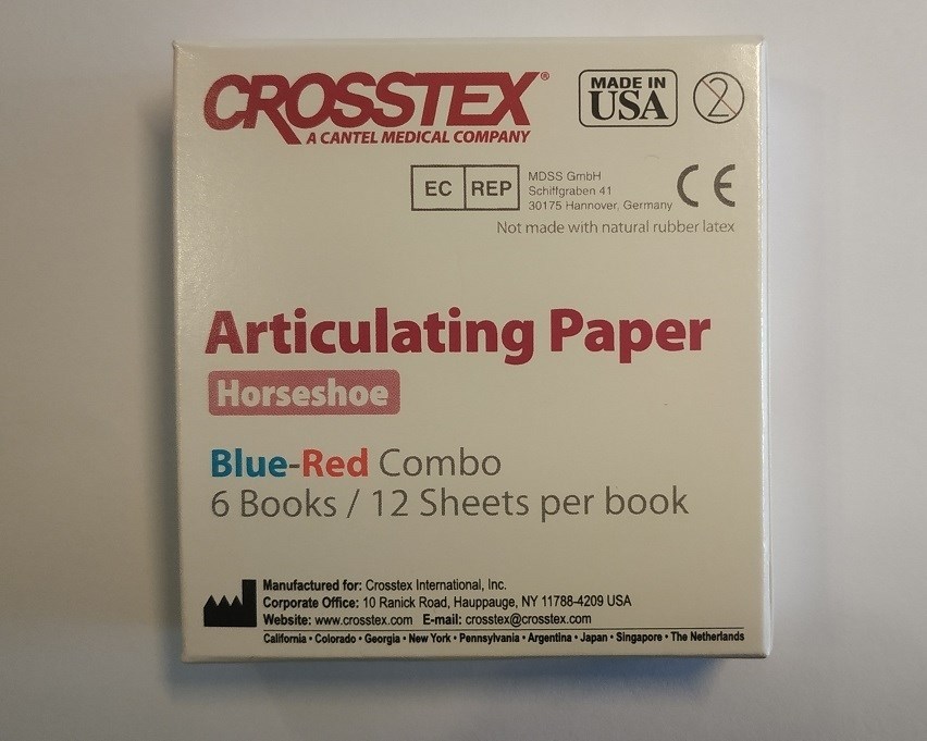 АРТИКУЛЯЦИОННАЯ БУМАГА ПОДКОВА - 89 МКМ используется для визуального контроля взаимоотношения верхнего и нижнего зубных рядов, жевательных мышц и височно-нижнечелюстных суставов. С помощью бумаги или фольги осуществляется анализ контактов зубных рядов, определение отклонений артикуляции в естественном прикусе или протезе.