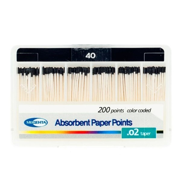 Бумажные штифты абсорбирующие, 02 конусность, №40, 200 шт