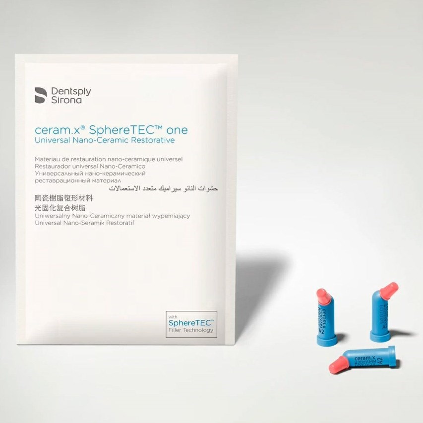Материал ceram.x® SphereTEC™ one основан на передовой технологии гранулированного наполнителя SphereTEC™. SphereTEC™ - эксклюзивная разработка компании Dentsply Syrona. SphereTEC™ - процесс производства микро-размерных сферических гранулированных супраструктур состоящих из субмикронного стекла. Морфология наполнителя SphereTEC™, распределение частиц по размеру и микроструктура поверхности являются ключом к превосходным рабочим характеристикам материала и естественной эстетике.