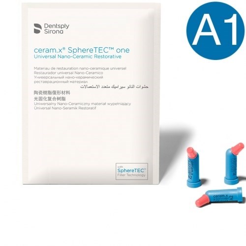 Сeram.x SphereTEC one А1 (Церам Икс Сфиртек А1) – это универсальный нано-керамический композит светового отверждения на основе уникальной технологии сферического наполнителя SphereTEC, показанный для прямых и непрямых реставраций. Не ограничен реставрациями по второму классу.
