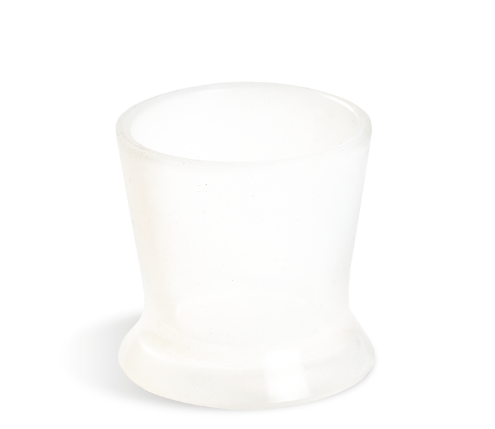 Чаши изготовлены из силиконовой резины, химически стойкой к воздействию мономеров затворных жидкостей для пластмасс. Высокая эластичность чашек позволяет без труда извлекать из них остатки полимеризованной пластмассы. Основание чашек, выполненное в форме «присоски», создает дополнительное удобство в работе.