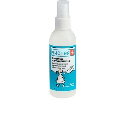 Описание: Чистея Плюс (спрей), антисептик кожный 100 мл.Кожный антисептик, готовый к применению раствор в виде бесцветной прозрачной жидкости с характерным запахом спирта или применяемой отдушки.