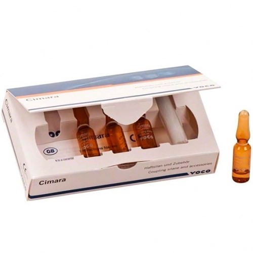 Oткройте ампулу с силаном Цимара для сцепления и накапайте препарат в емкость для смешивания. При помощи чистой кисточки нанесите тонким слоем силан для сцепления Цимара на обработанную керамическую поверхность и на открытую поверхность металла. Слой оставьте высохнуть на воздухе на 2 мин. (не используйте воздушный пистолет), прежде чем использовать следующий рабочий слой. Открытую ампулу используйте только для проведения одной починки и не храните для следующих реставрационных работ (разрушение силана для сцепления). Используйте только силан для сцепления Цимара для достижения оптимального соединения.