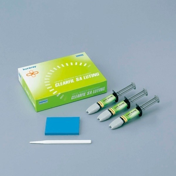 CLEARFIL SA LUTING — рентгеноконтрастный самоадгезивный цемент для фиксации двойного отверждения (светового и химического). Не требует использования праймера при фиксации. Точное дозирование и удобное замешивание. Высокая сила адгезии к эмали, дентину, металлу и пр.