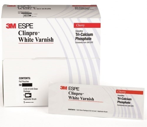 Описание: Clinpro White Varnish Cherry (1 ап..х0,5г)- материал для фторирования и снятия чувствительности в АПЛИКАТОРАХ, 3МClinpro White Varnish CHERRY – фторсодержащее покрытие, которое наносится на эмаль и дентин зубов. Содержит в своем составе запатентованный компонент – защищенный трикальцийфосфат (fTCP), а также 5%-ный фторид натрия. Действие fTCP обеспечивает образование сильного, кислотоустойчивого минерального состава твердых тканей зубов.