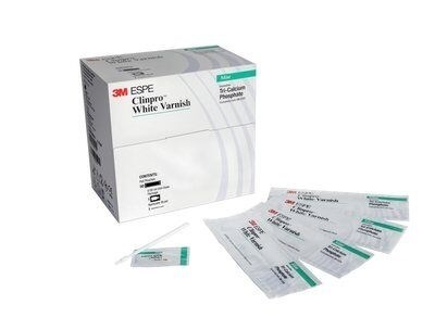 Реминерализирующее покрытие Clinpro™ White Varnish содержит 22,600 ppm фтора и уникальный ингредиент – трикальцийфосфат, благодаря которому способен выделять фосфаты и кальций. При нанесении материал покрывает поверхность зубов и, взаимодействуя со слюной, затвердевает, выделяя кальций, фосфаты и фтор до 24 часов, что обеспечивает продолжительную реминерализацию и снятие гиперчувствительности.