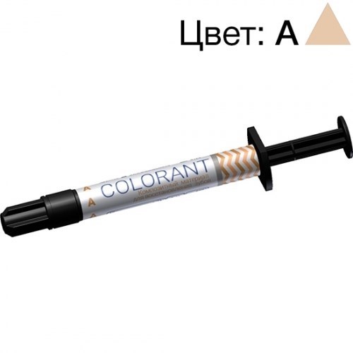 Композит COLORANT – это сложный химический маериал, состоящий из органической матрицы (Диметакрилат Диглицидоэтер Бисфенол А, Диметакрилат Диуретан, Триэтилена Гликоль Диметакрилат), неорганических наполнителей (стекла алюмо-боро-силикатного, плавленого кварца, диоксида титана и дополнительных веществ: фотоинициаторов, ингибиторов, катализаторов, подвергающихся свободнорадикальной полимеризации, активируемой ультрафиолетовым светом (от 400 нм до 500 нм). Содержание минеральных наполнителей – 60%.