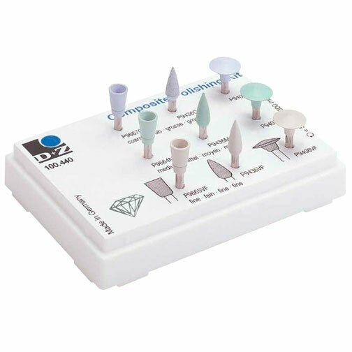 Набор алмазных боров для полировки композитов от D+Z используется для эстетической реставрации и протезирования. Девять разных по форме и размеру боров позволяют максимально быстро и качественно прошлифовать и отполировать разные участки пломб или ортопедических конструкций.