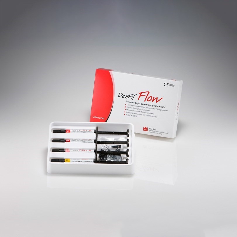 Denfil Flow Ознакомительный набор 4 х 2 г (A2, A3, A3,5, B2) - жидкотекучий светоотверждаемый рентгеноконтрастный композит.