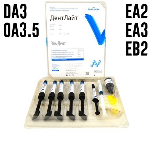 Микрогибридный композит, «ДентЛайт» оттенка: OA3,5; DA3; EA2; EA3; EB2;