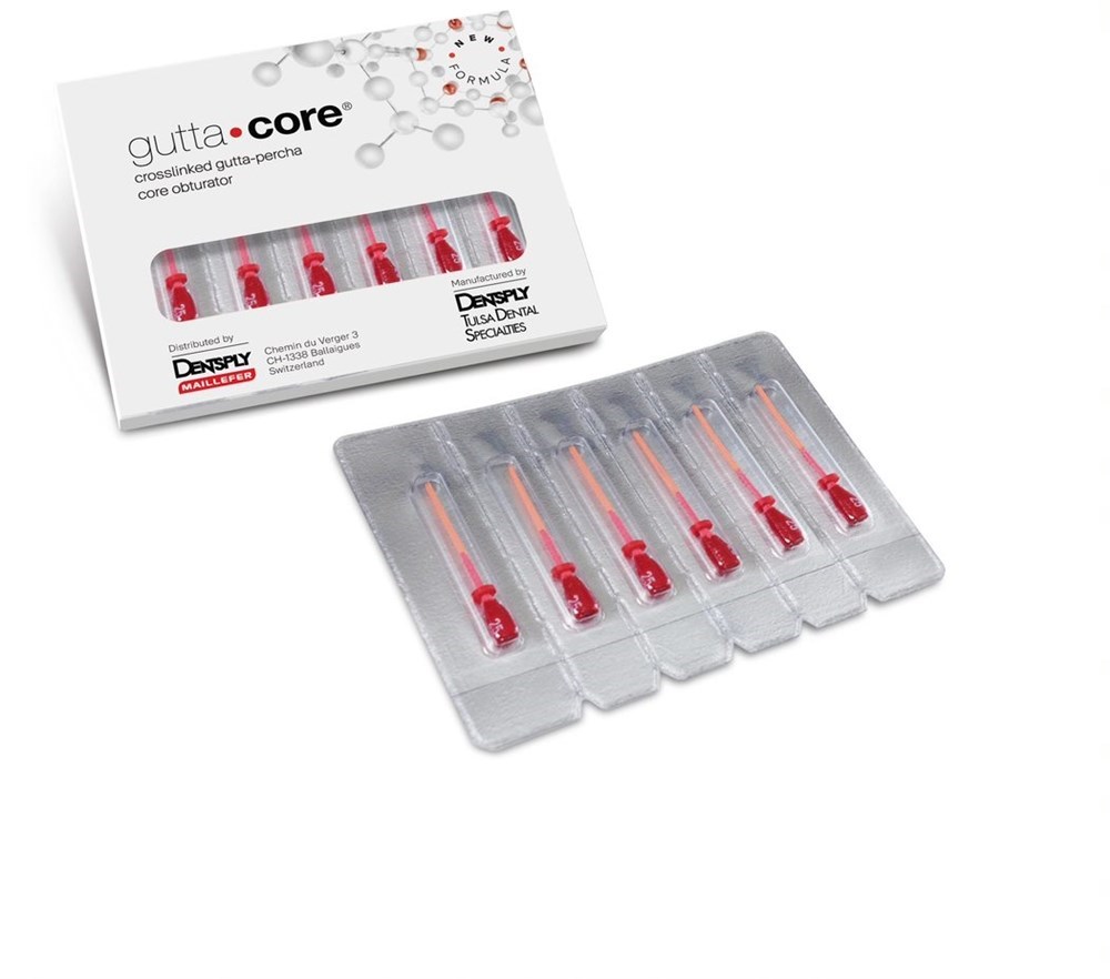 GuttaСore запечатывает все боковые ответвления и перешейки благодаря своему строению: внутри — носитель из поперечно-сшитой гуттаперчи, снаружи — альфа-гуттаперча.