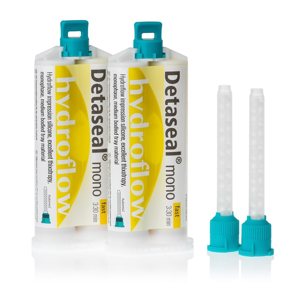 Монофазный силикон Detaseal hydroflow mono предназначен для снятия оттисков, обладает средними текучестью и консистенцией, пригоден для одноэтапных однофазных оттисков или одноэтапных двухфазных оттисков. Силиконы Detaseal разработаны и производятся на немецком заводе Detax с соблюдением самых высоких требований к слепочным материалам. Detaseal hydroflow mono имеет выраженный эффект SnapSet. Благодаря крайне высокой гидрофильности слепки из Detaseal hydroflow mono получаются особо точными во влажных областях, а также при получении оттиска при работе с имплантатами с использованием трансферов для закрытой и открытой ложки.
