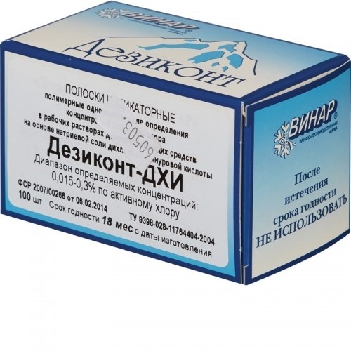 Научно-производственная фирма "Винар" выпускает индикаторные полоски серии "Дезиконт" для контроля концентраций рабочих растворов дезинфицирующих средств на основе четвертичных аммониевых соединений, хлор содержащих препаратов, альдегидов, перекисей и т.п. (см. таблицу).