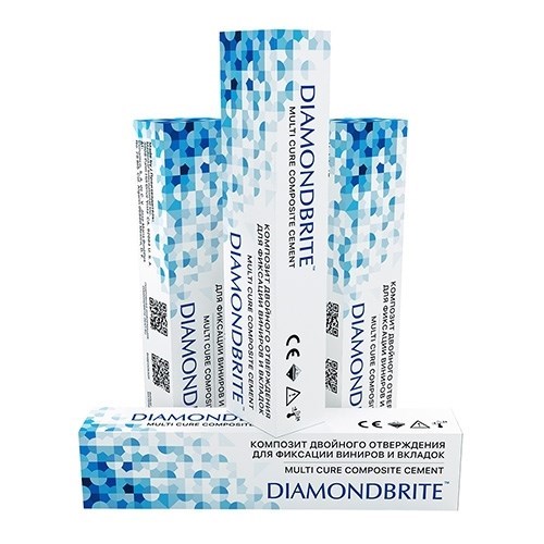 - Самопротравливающийся самоадгезивный цемент двойного отверждения Diamondbrite Multi Cure Composite Cement Double сочетает в себе такие достоинства как высокая прочность, отличные эстетические свойства.